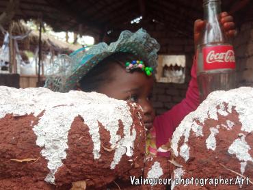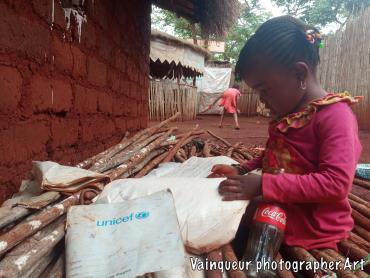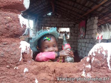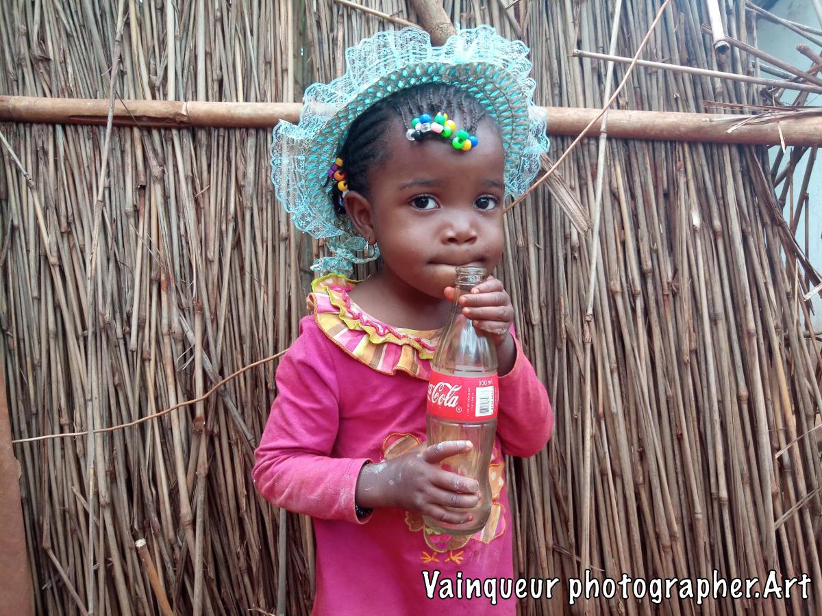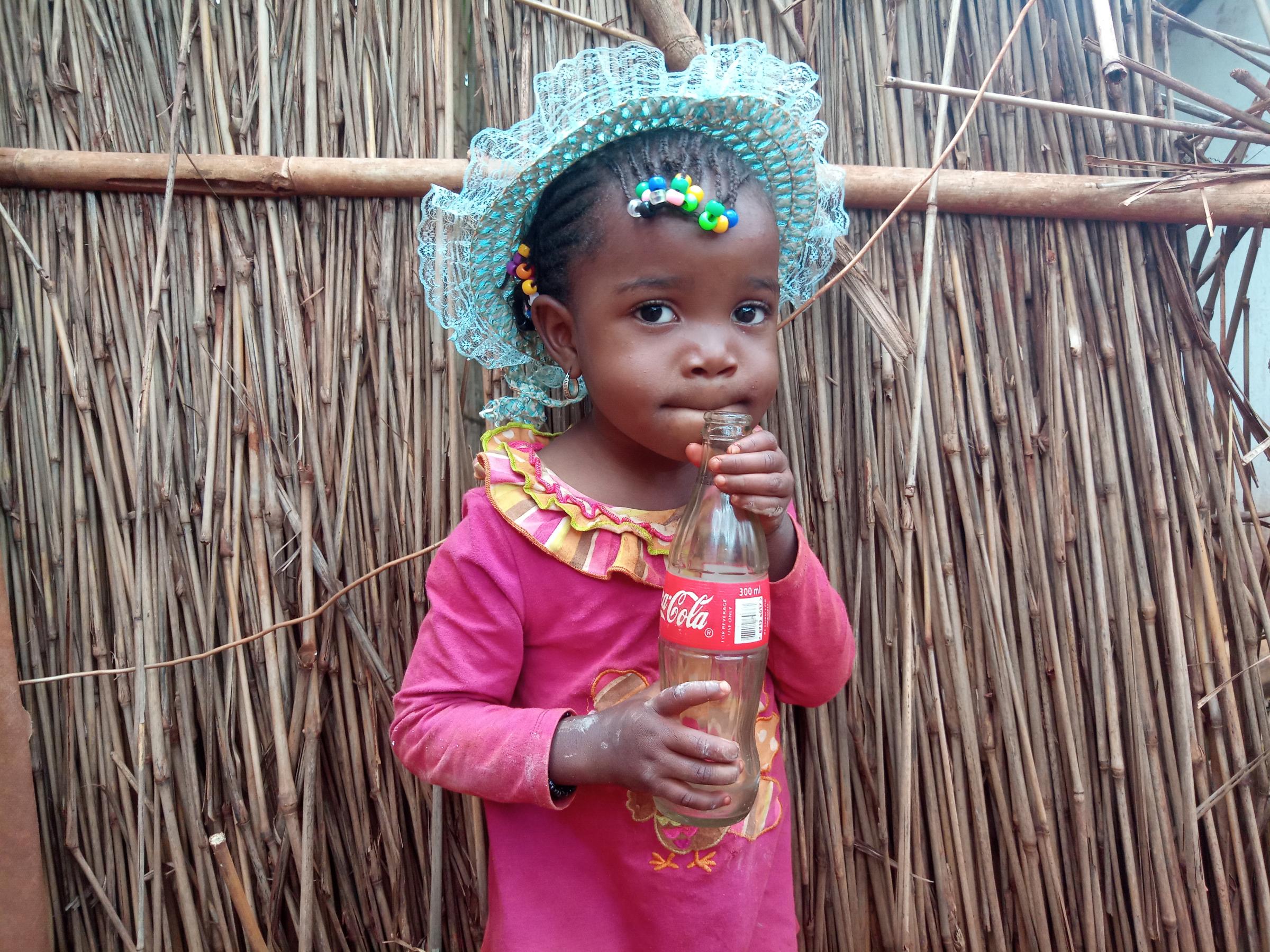 Aziza is the second daughter of Ashura. She was born in Nyarugusu refugee camp. Her mother had fled insecurity at DRCongo while she was pregnant, a month after her arrival in Tanzania, she gave birth to a child named Azizi, therefore Aziza has never seen her father. She lived with her mother and big sister Zainabo in the same plot with their maternal tent. Aziza, she is passionate about the taste of Coca Cola. After my visit of their home I saw Aziza with a bottle of Coca Cola. Her big sister told me story that a customer after having drunk the content of the Coke he left the bottle and Aziza recovered it to drink the rest of the Coke. By way of that I would offer her a cake. Where they live in their plot there is a place for a restaurant.