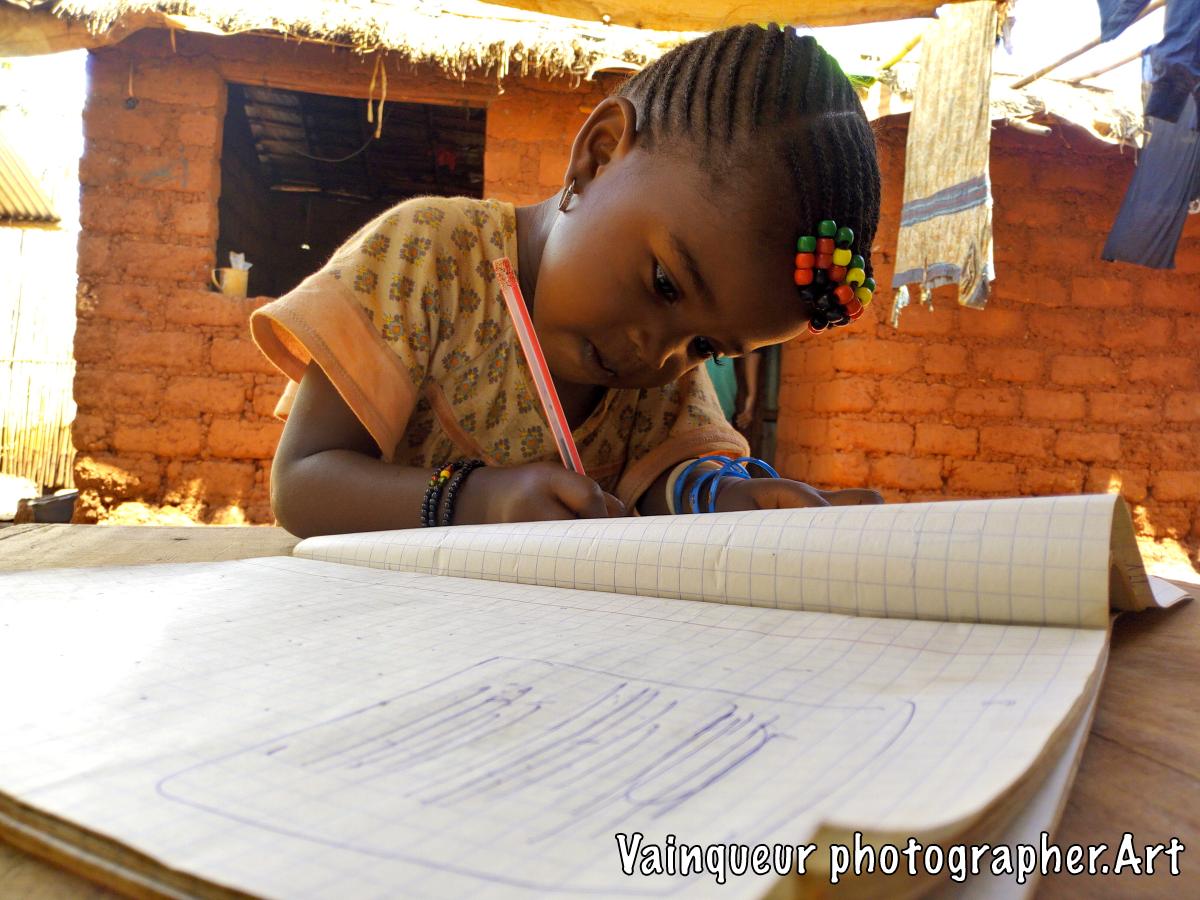 She says she will write a letter to her mother, directly takes a pen and a notebook and start drawing the lines supposedly she does a letter writing. Aziza never went to school but she is interested in school education.