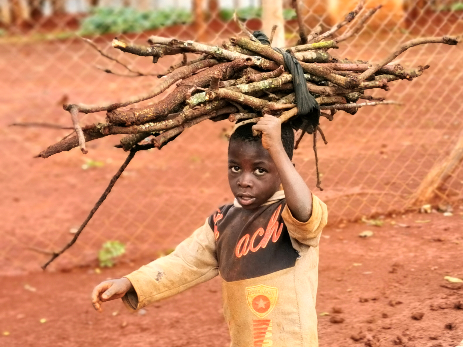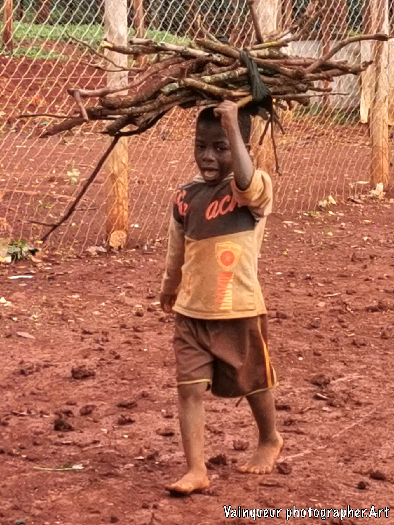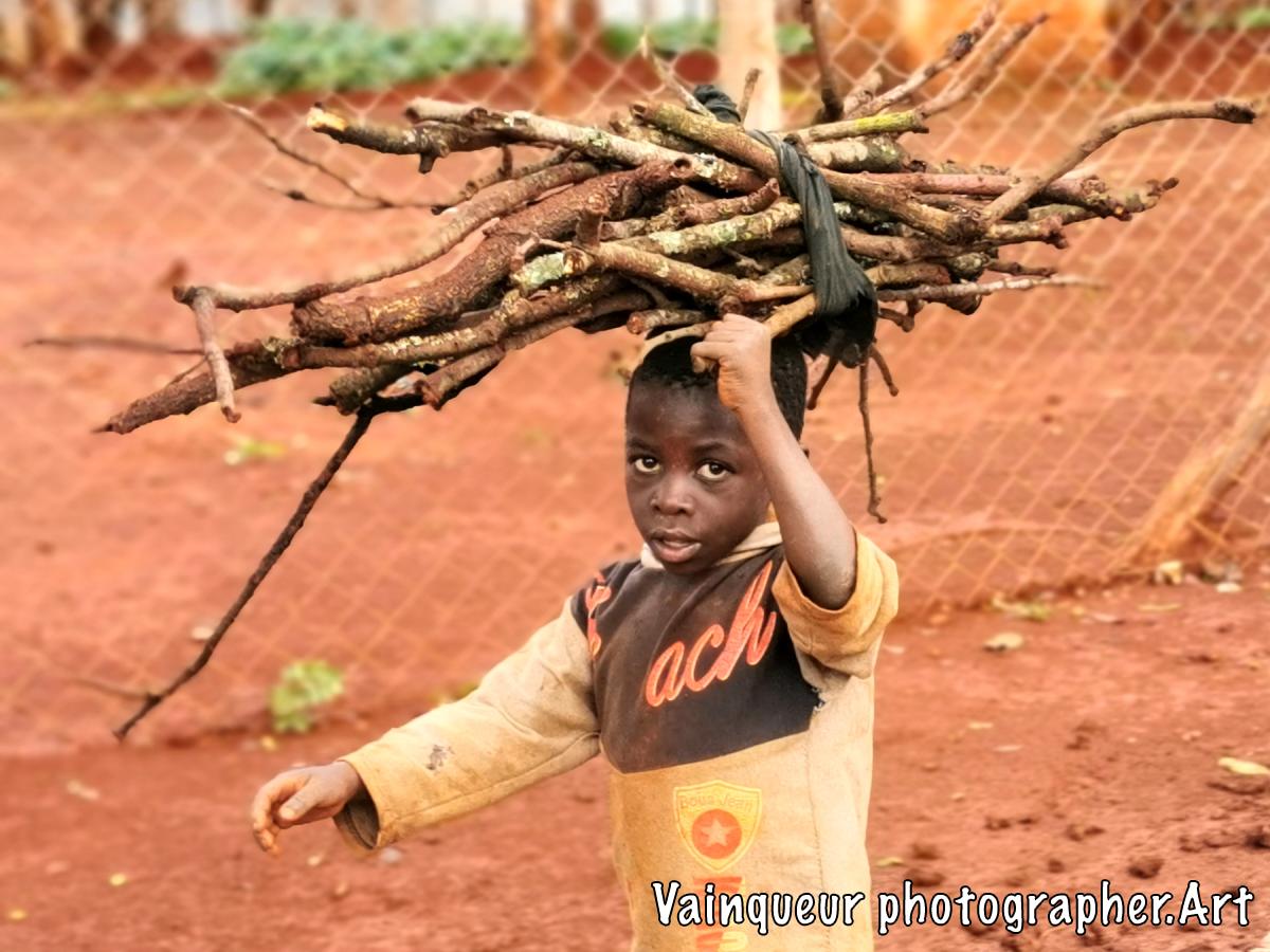 This little boy is not worried about his barefoot condition, he gave himself the courage to pick up the pieces of the wood falling after a heavy rain. He said: "We don't have the charcoal to prepare the food, but we have to prepare the beans. My mother told me to bring the pieces of the wood and then she can prepare the beans."