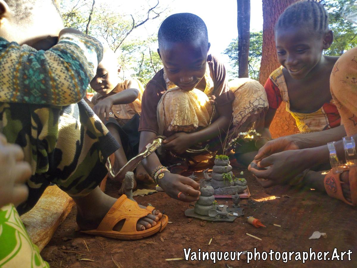 There is an atmosphere in childhood that some did not have in their childhood. During this rainy season, during the holiday periods, several children have fun with the mud and sand. And make sculptures, everything starts from a young age. From childhood we can guide the child in the area he wants. Here is a birthday cake from Zainabo and this friends celebrating the birthday. There is a kingdom and other lives that our children live when they are surrounded by themselves, the oldest is always the Kings or these they have already played.