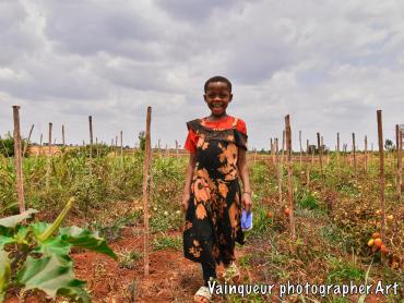 Esta (8) does maintenance work in their tomato garden on the outskirts of their home near the Nyarugusu river.