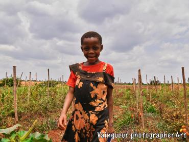 Walking along the Nyarugusu River, we were delighted to see a brave little girl tending their tomato garden.