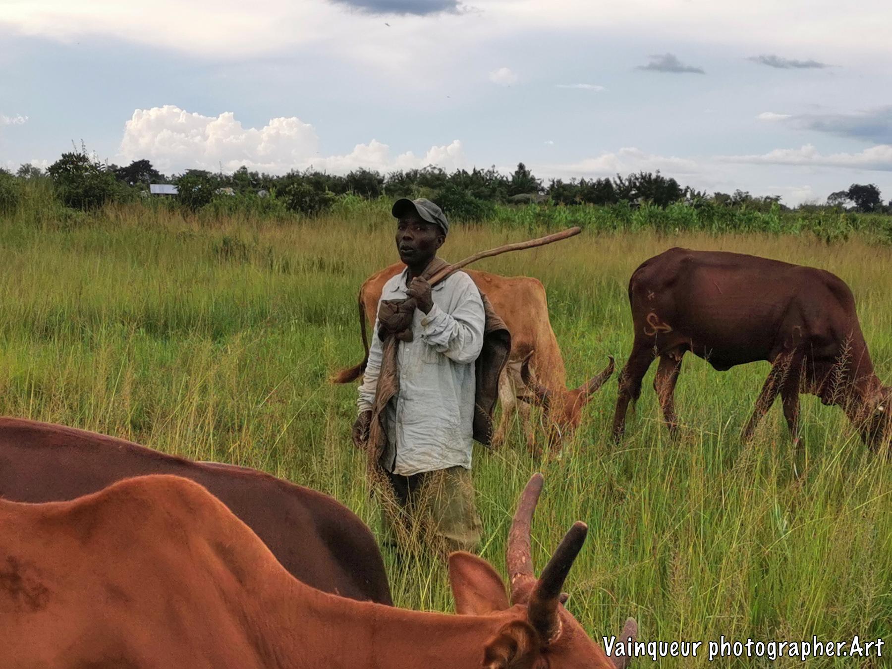 Breeding in Nyarugusu, of course, some farmers have several cows. On this photo the shepherd had called me, so that I could take a photo with his cows. I asked him, if all the cows were his. He replied that: "There are 30 cows in general, but these 30 cows are for 4 people. So I am the shepherd, the owner of these cows pays me to keep their cow in the bush. And all these cows are kept on the same farm."