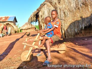 Happy to meet these children of the same family with their means of transport out of wooden, it is a little funny even it is a thing to encourage so that it makes a movement of transport something and also it makes busy the children in this villages to play with and also for creativity has always been a key to any productive science field.