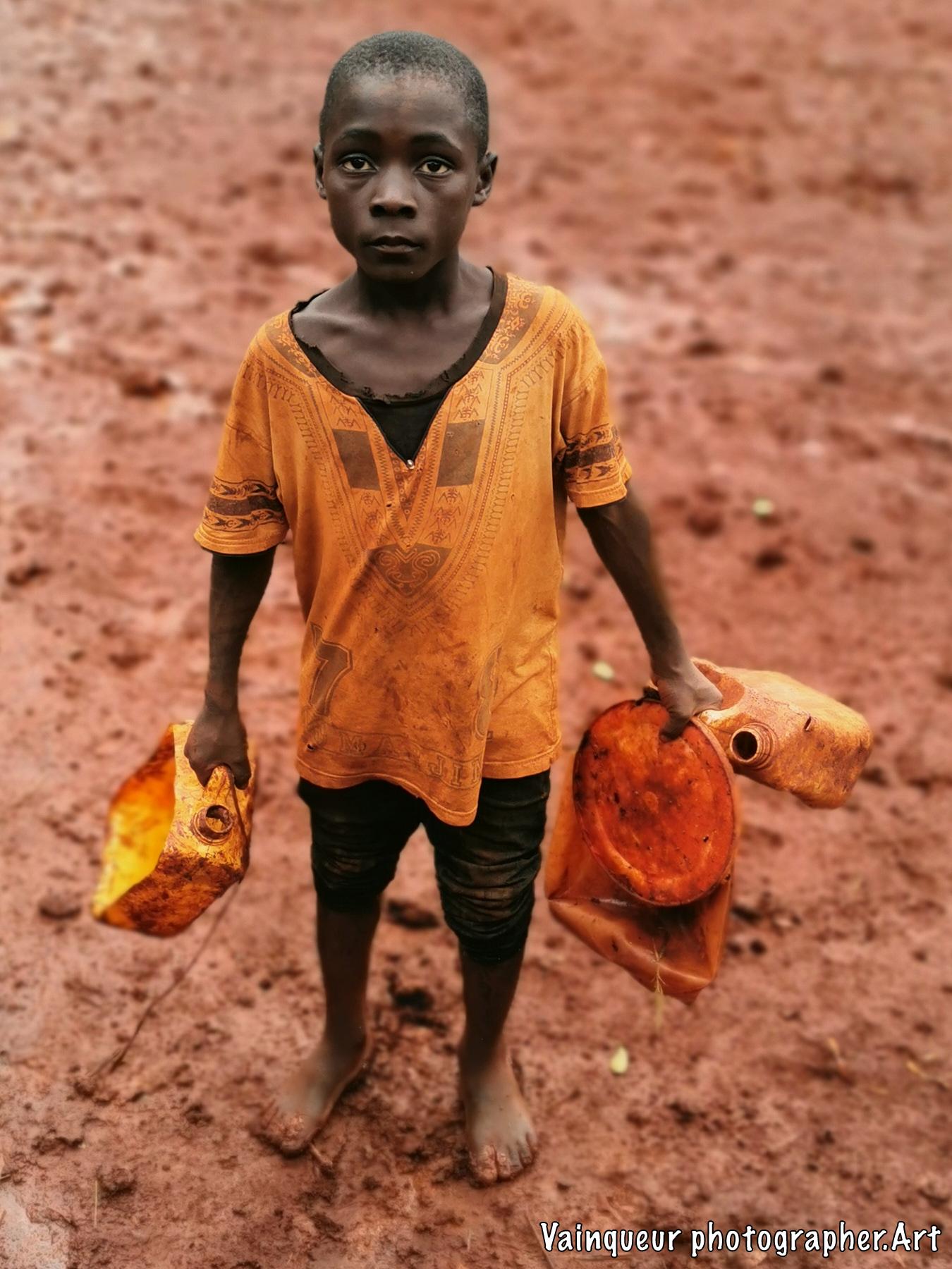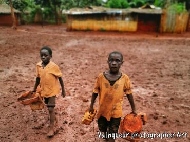 After a heavy rain, I have taken a photograph of the two young children who came to the trash to pick up the plastics.