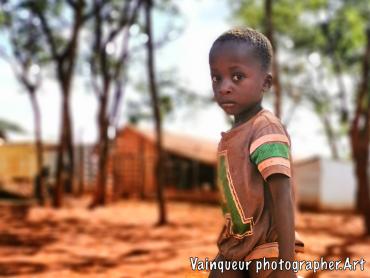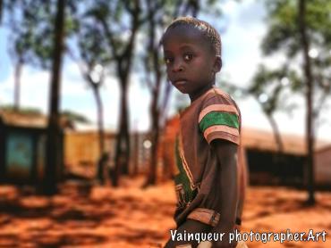 This little boy is coming from the pump which is a few meters from his home. This brave little boy has taken care of the water while his sisters went to the WFP depot to receive food and his brothers went to school. So this boy has gone to bring the water.