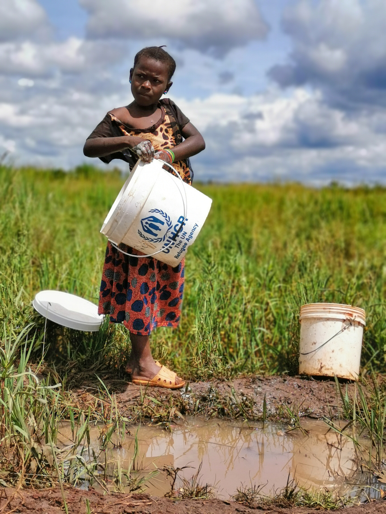 We had the chance to exchange a few words with this girl. She explains to us that her mother went to the depot to receive food and that she takes care of the maintenance of the house and other things. Her mother will find everything in good condition.