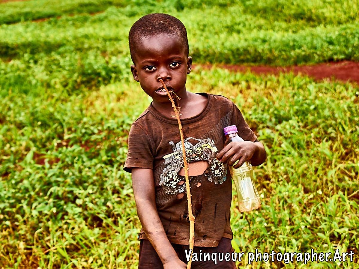 After my return to Nyarugusu, I met a child named Jonas sitting on trees in stagnant water, which the locals called "Kichiba". The little boy was lonely while other children were celebrating the New Year's Day in their families.