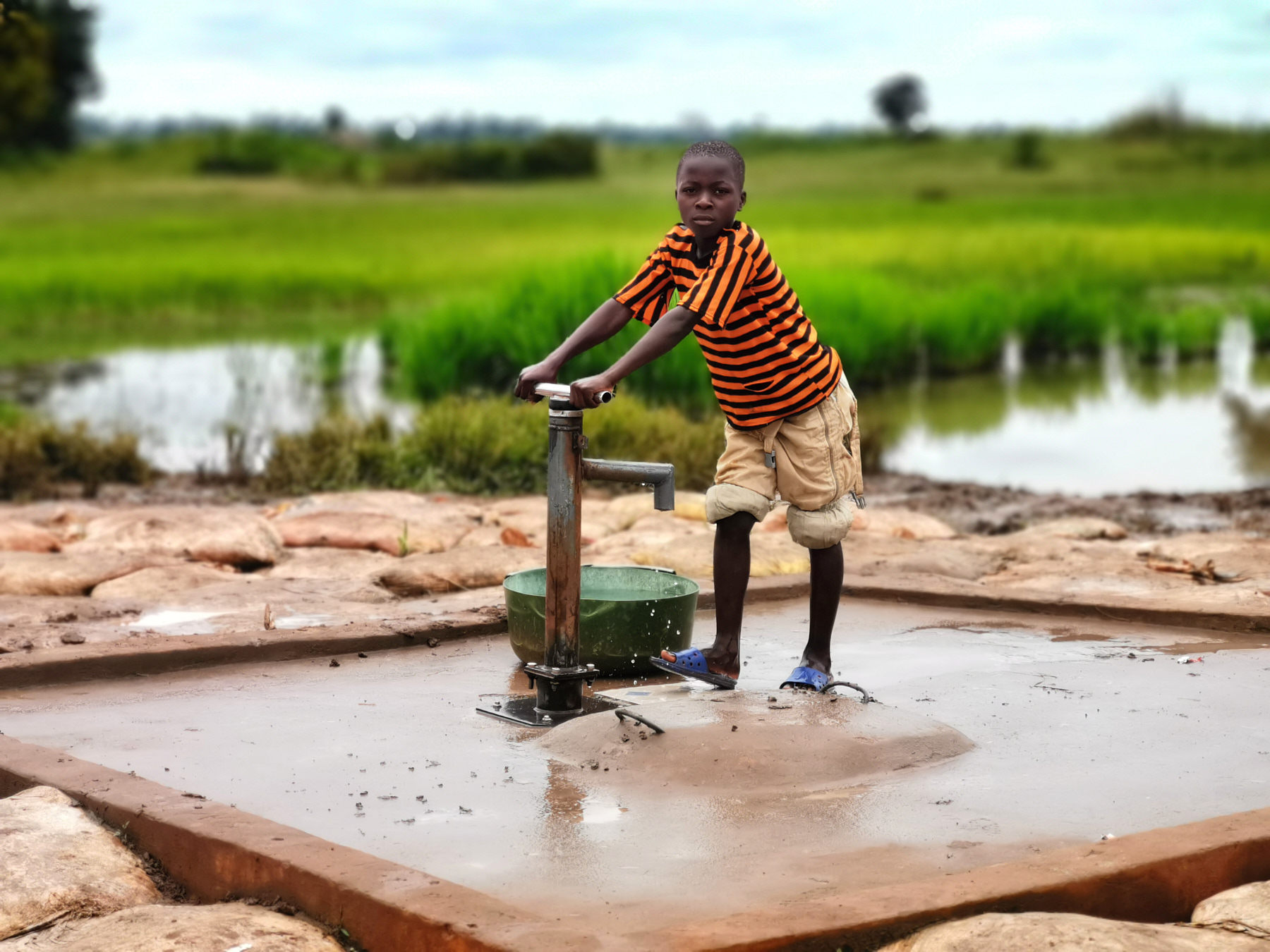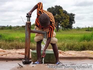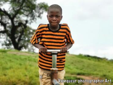 The youngster lives very close to the pump. He was on the football field and when he got home, he discovered, that he has no water to take a shower and go to school. This little boy headed straight to the pump to get rid of the dirt. He said: "I don't have time to wash my whole body anymore, so I wash my head, arms and feet. My time is over, I have to be in school right now!"