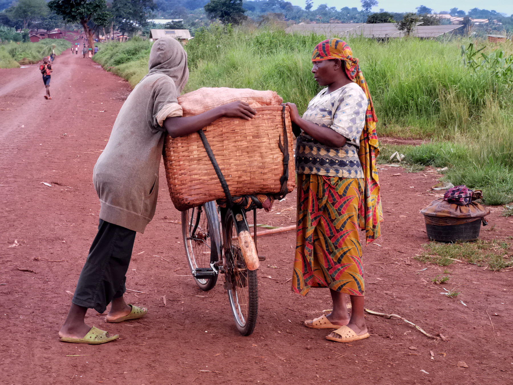 In this photo, two women and a boy are returning from the field which is located a few kilometers from the Nyarugusu refugee camp, this field is in the village where the Tanzanians live, they left to buy tomatoes and other food from the farmer. This goods will be sold tomorrow in a corner of the camp.