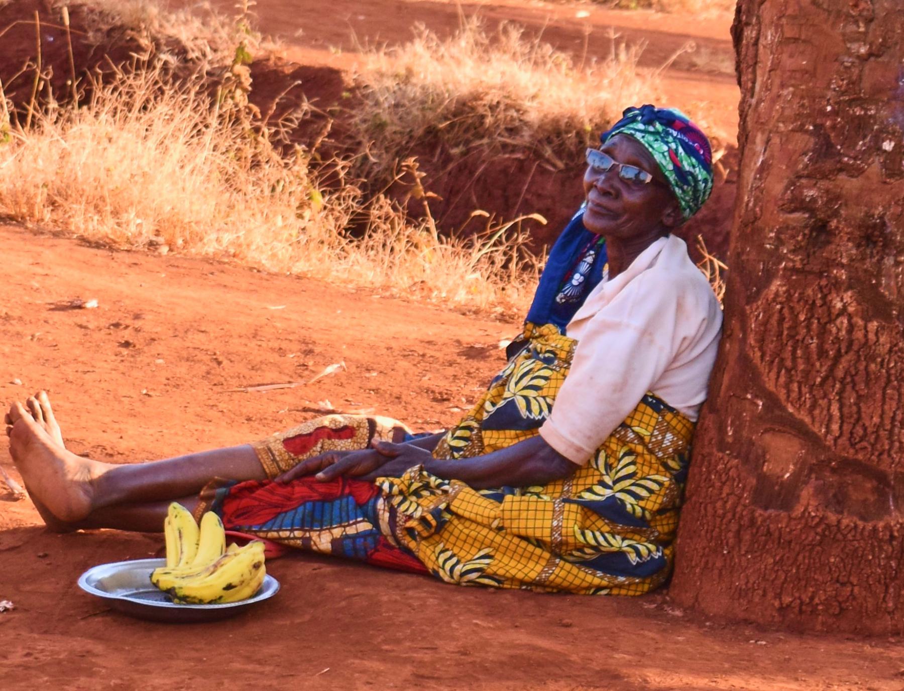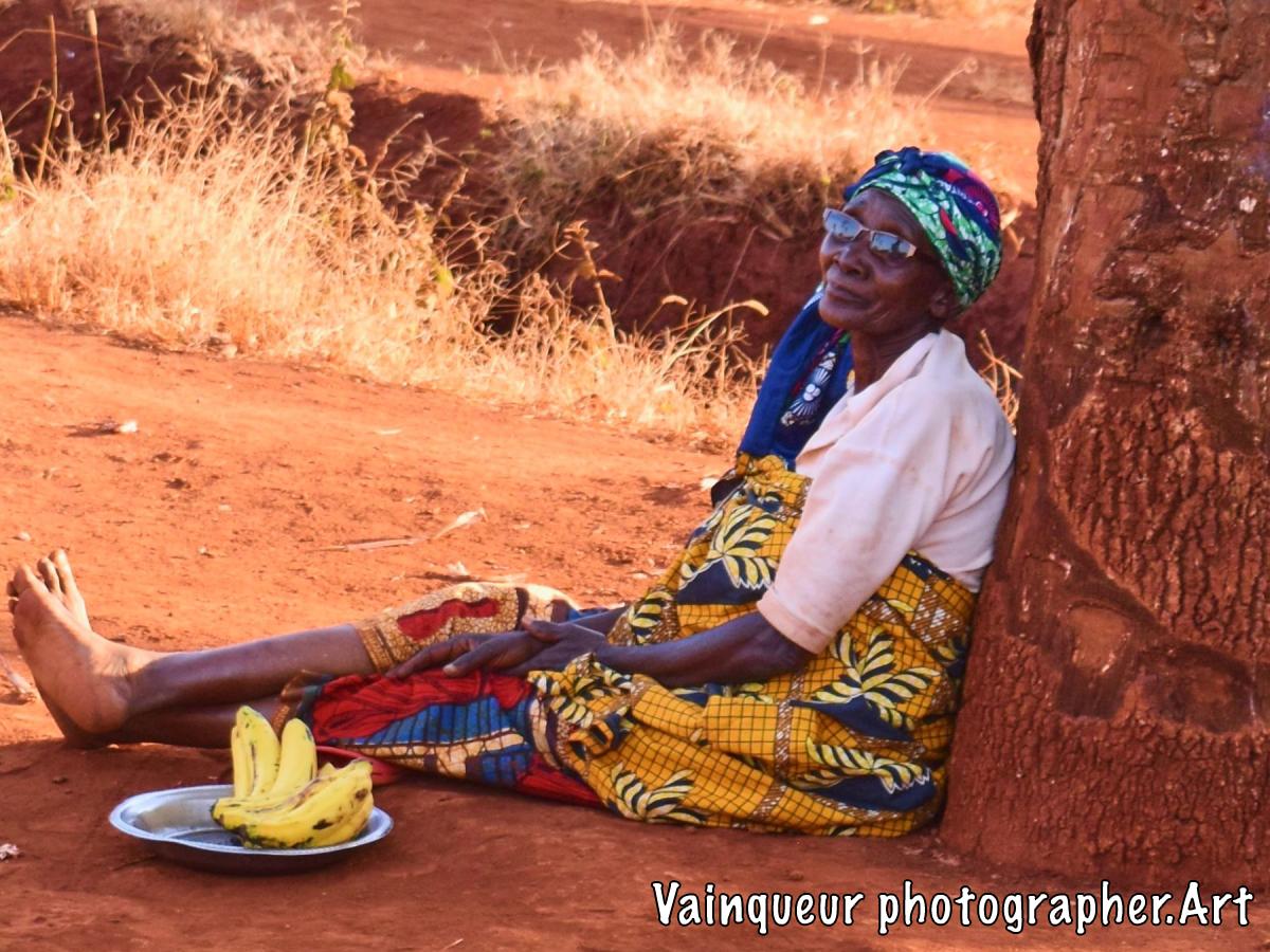 "I am a refugee woman and today I harvested the fruits of my banana tree and I decided to come here on the road so that the belly to the passerby.''