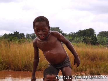 Beautiful atmosphere for our children, friends, small brothers who have fun from morning to noon. The water looked dirty, but they told us that the water is very clean, because this water is the color of Nyarugusu' red sand.