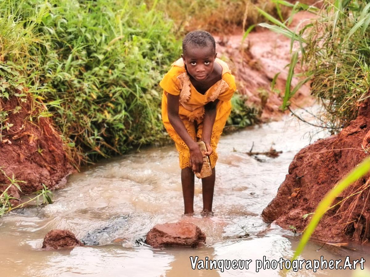 The little girl did not want to go to the main road that leads to their home. She explained to me that: ''Si pendi zunguka'' which means ''I don't like bypass'' and also "I like going here to clean my sandal and wash my foot because I didn't like to get to the house with dust."