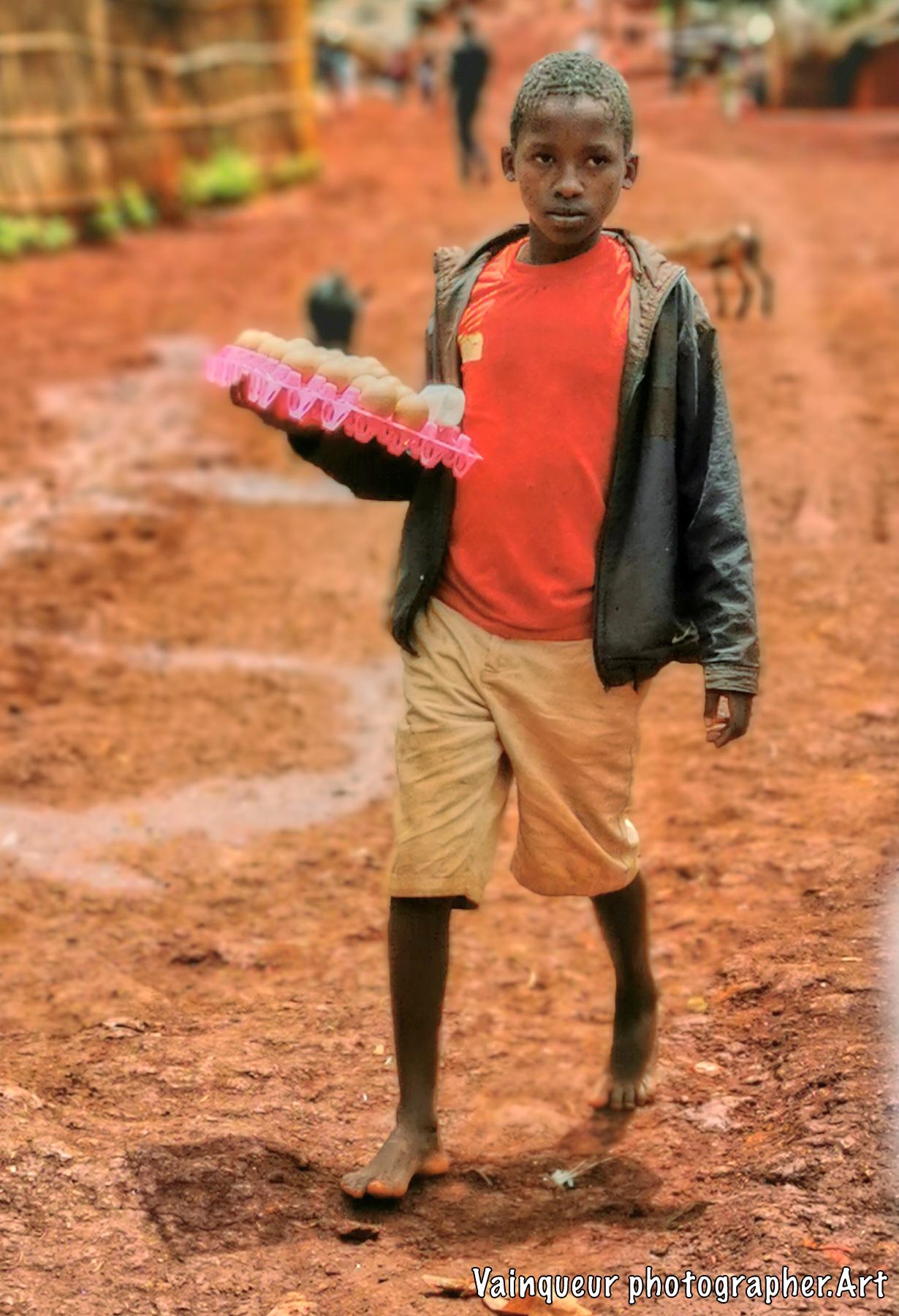 The little egg seller is a schoolboy. He likes to do his business during this period of confinement. The little boy told us that he shouldn't stay  at home and do nothing: "Better to do something else to solve some of the needs that I miss."