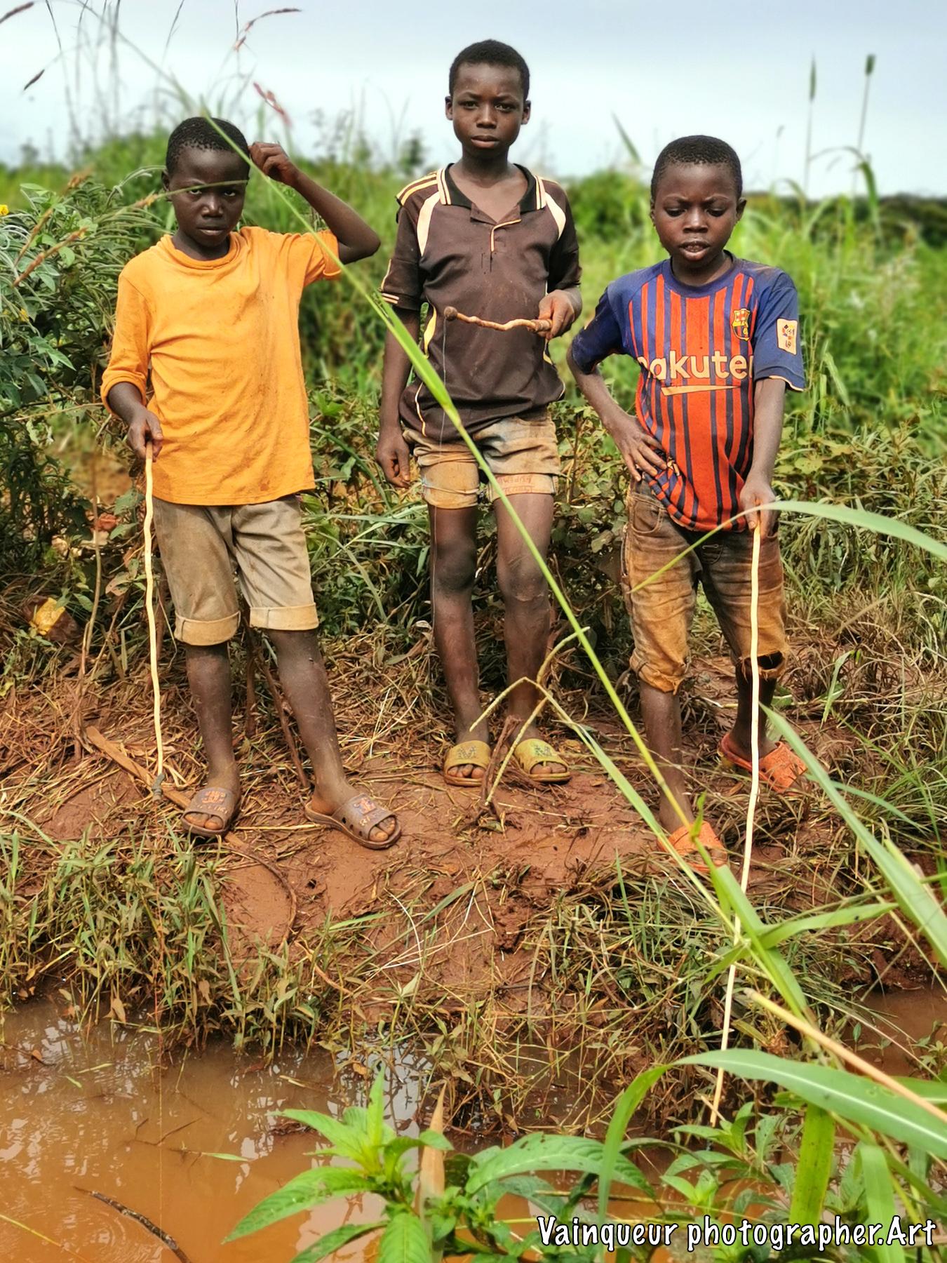 These three boys catch small fish in Nyarugusu river. After fishing these small fishermen find two options, either they will sell these fish or bring back home for family dinning. This little boy told us if he found several fish, he would sell some fish and other fish would be brought home. He add that he needs money to buy the sandals. It seems to be selling certain fish.