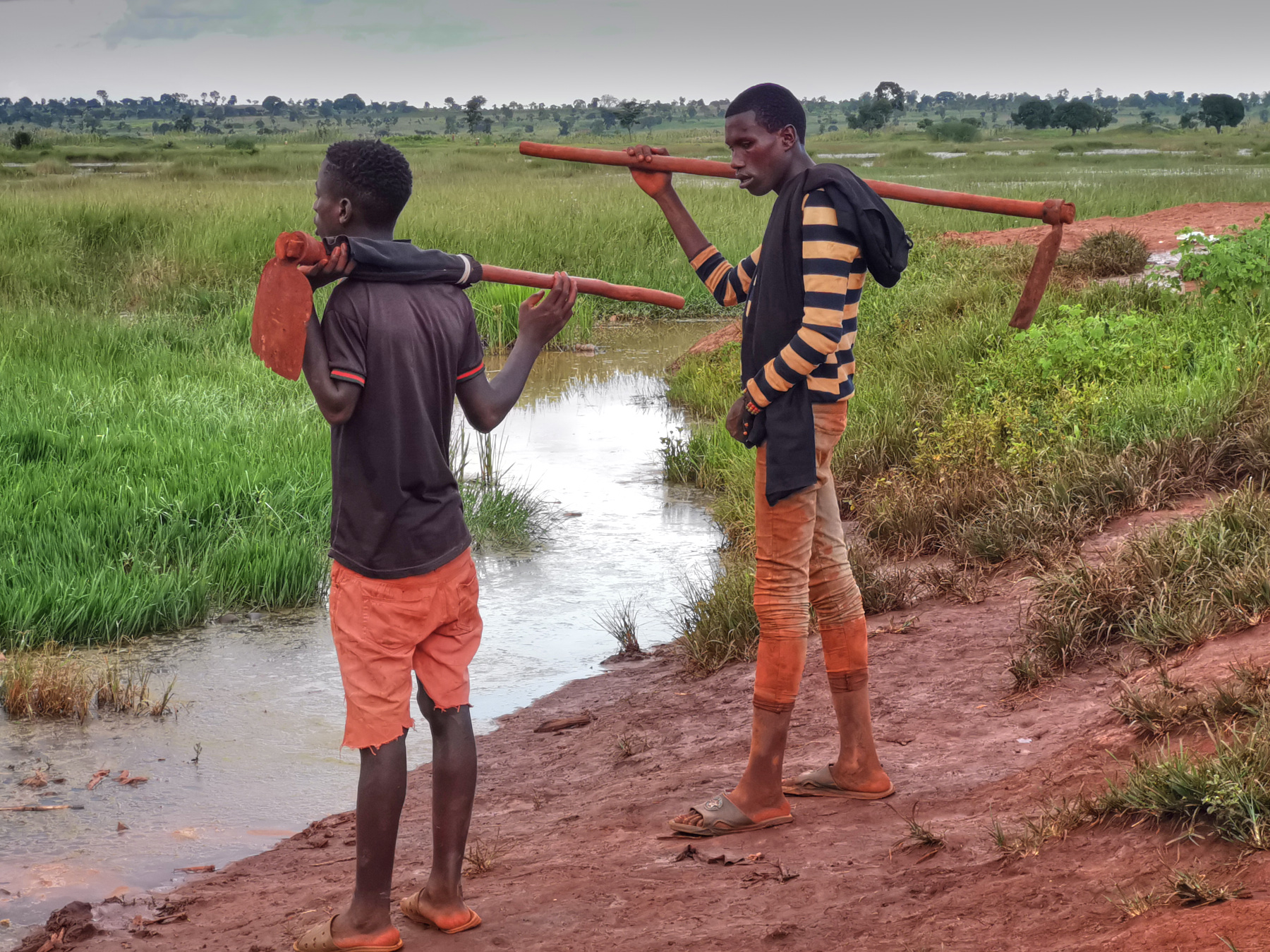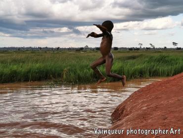 We met the children, girl and boy, who relaxed in Kichiba in washed clothes and others, who were swimming in the dirty water of Kichiba. The water is not dirty for them, but it takes the colour of the red soil of Nyarugusu.