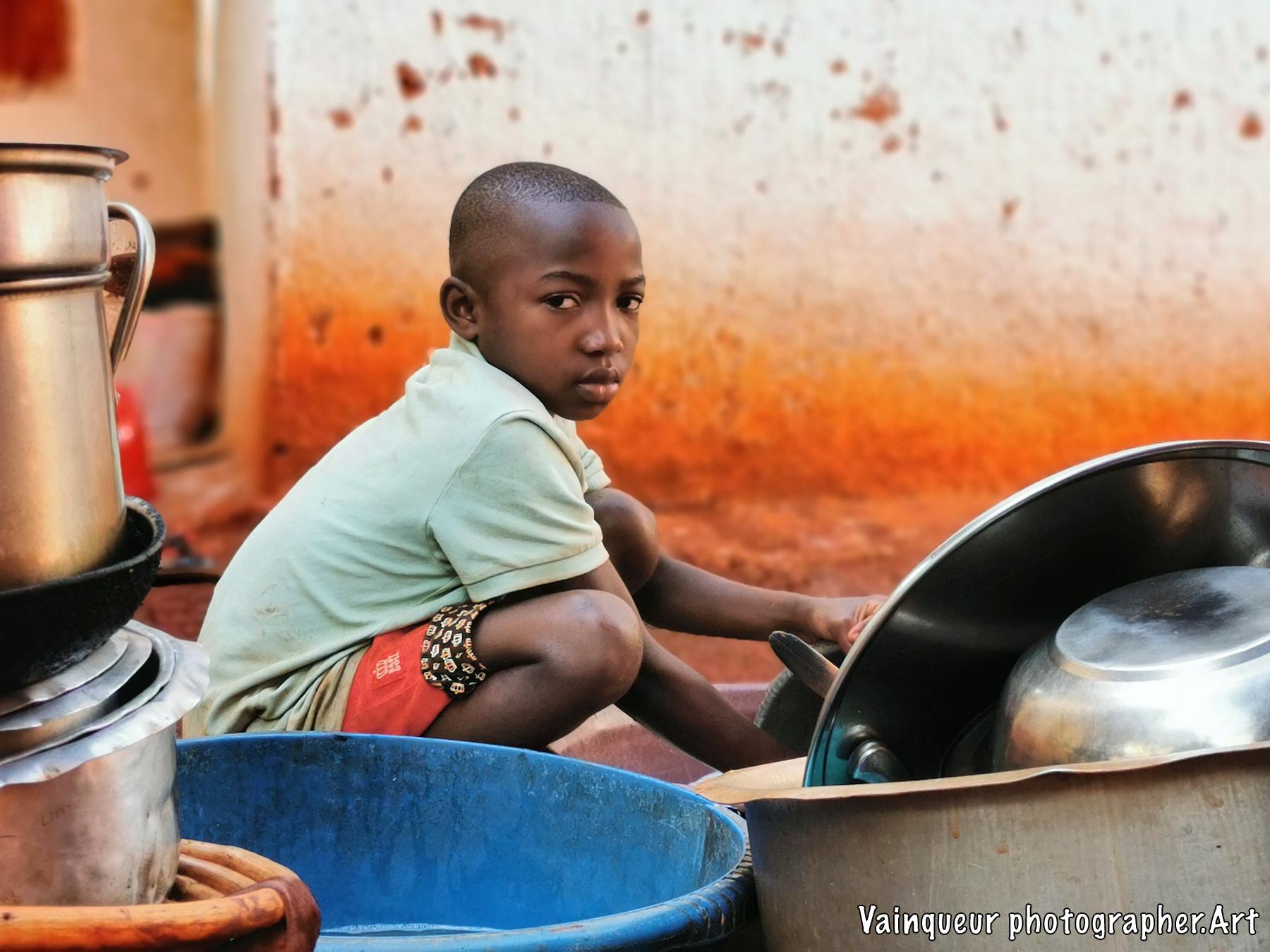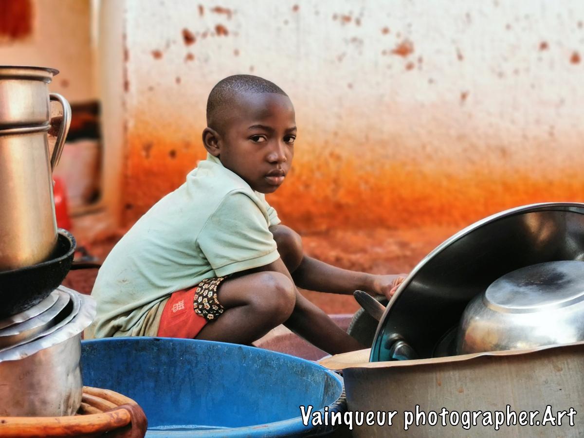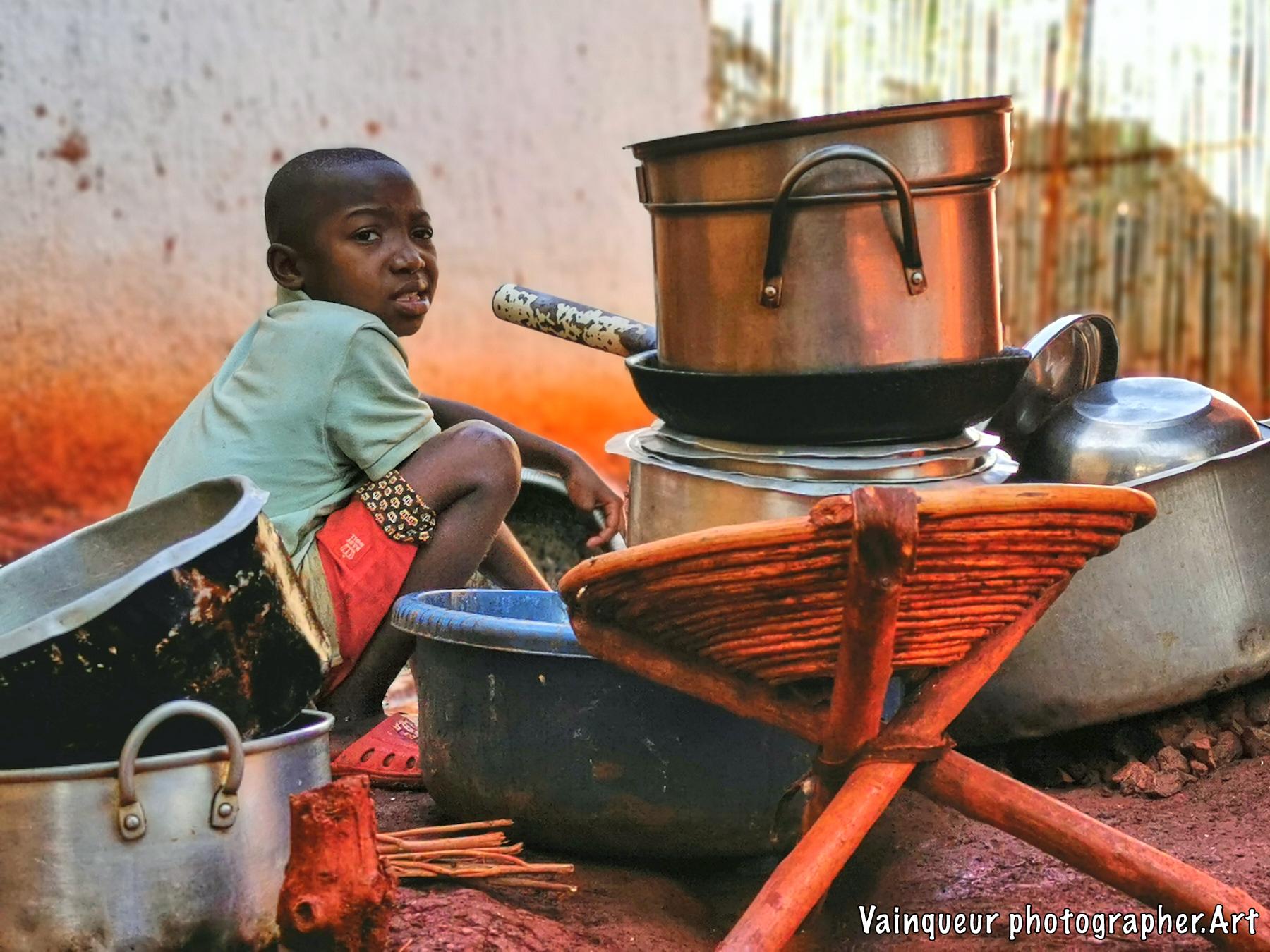 Her name is Zainabo, she is a smart girl and also brave according to her mother. What is surprising is that Zainabo is angry because her mother tells her that she has to clean all the pots before going for a walk with her friends. As she thinks herself clever she wanted to hide some saucepan to clean it later. Unfortunately, her little sister Aziza was watchful and alerted her mother. Zainabo explains to me that she will clean up in her due time because she is wanting to participate in their children's game Kunoka. Her mother obliges her because if she leaves without cleaning the pots, it will be impossible for her to do it later because the water is not available all the time and she has to prepare the food in clean pots. By saying it to his daughter: "Okey, you will play your game after cleaning but you refuse cleaning dishes. I'm telling you, you'll eat your game at night because you like game more than cleaning our casserole, pot and pan. Do the things which you are important to you." Zainabo has finally agreed to clean all the dishes before going to play their Kunoka childish games.