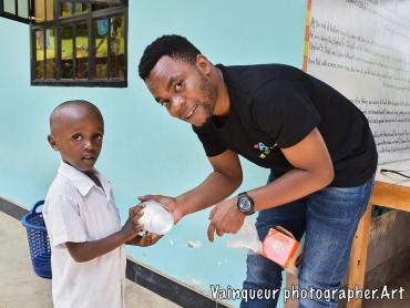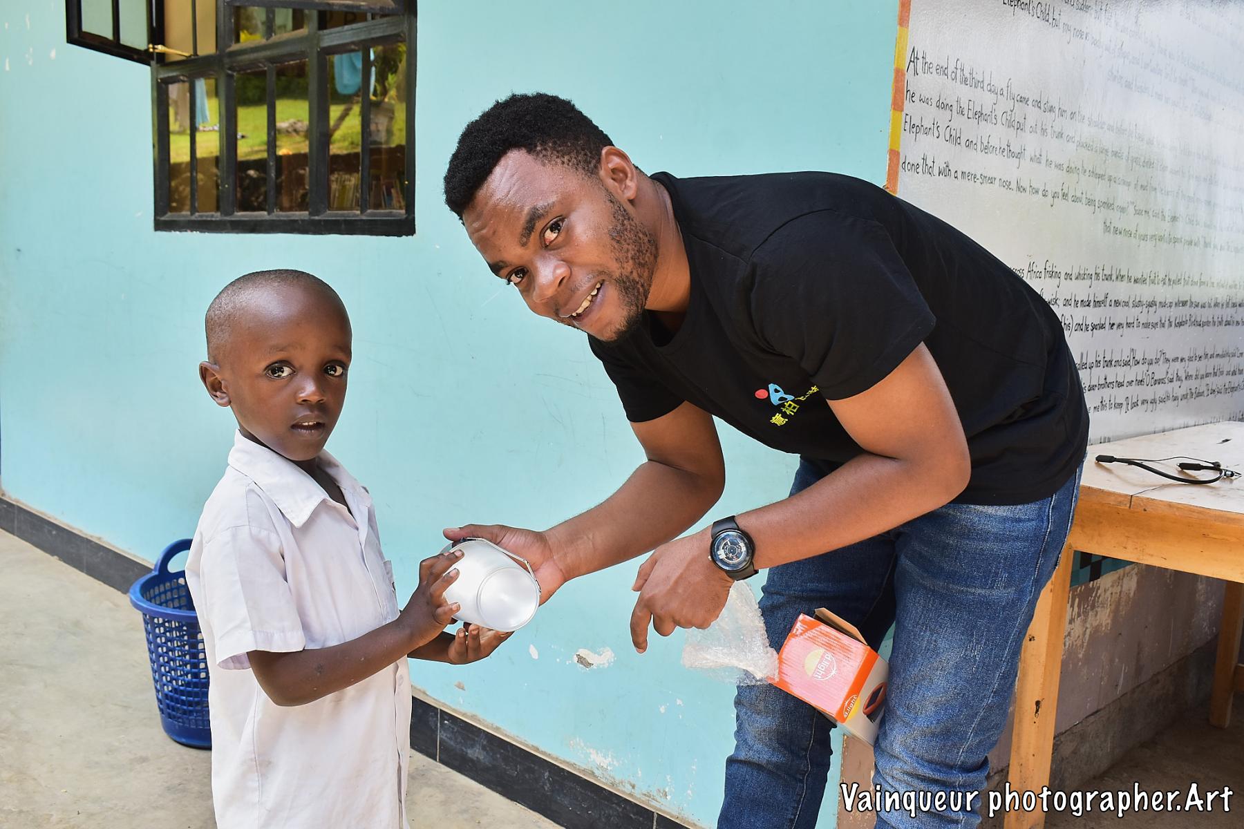 One morning when I came to work my colleague Jumanne John contacted me for a photo of Junior Nahum, I only knew his face but not his name when I arrived at the pre-school which is located, Jumanne made the call to Junior's teacher for a picture of Junior, Jumanne gave him a solar light and I took a picture of him, out of curiosity I was interested to know about it and why he was choosen to receive such a gift instead of his school-mate.