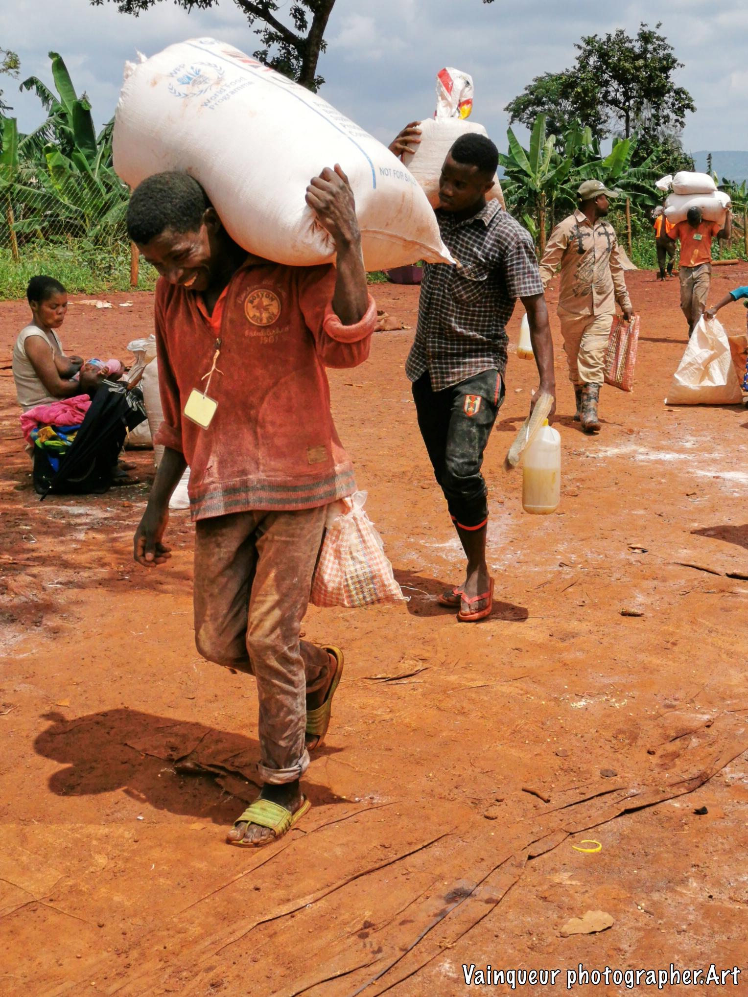 Every month, all refugees are entitled to food during their stay in the depot. There is an opportunity for some traders who exchange small amounts of beans or other good things. They make their exchange outside the deposit. There are other people who help you to take away the food from the warehouse outside the fence. If these people help you transport the package, you must motivate them with a small amount of cornmeal. Other people using bike to help someone who is live far from store, they pay money for it service. And others transport food to house from store by themself.