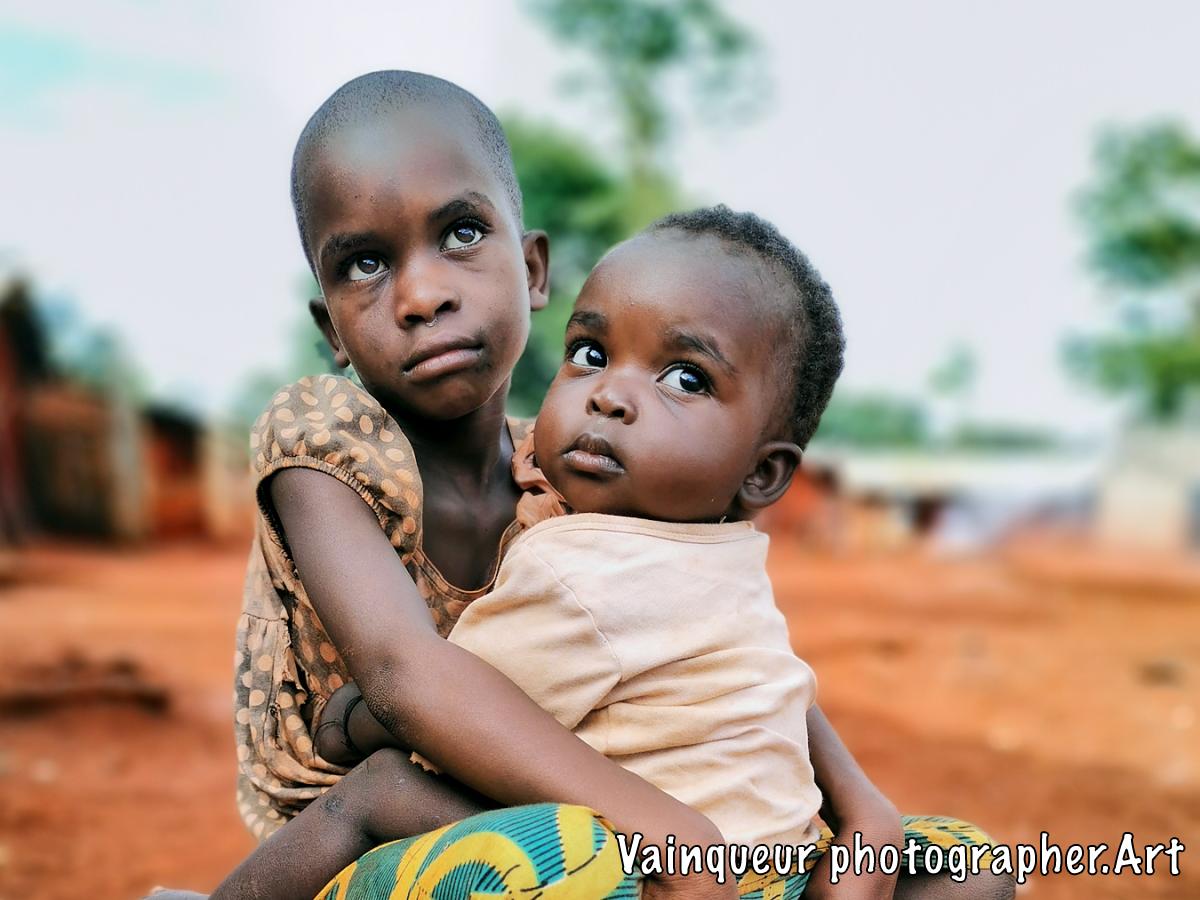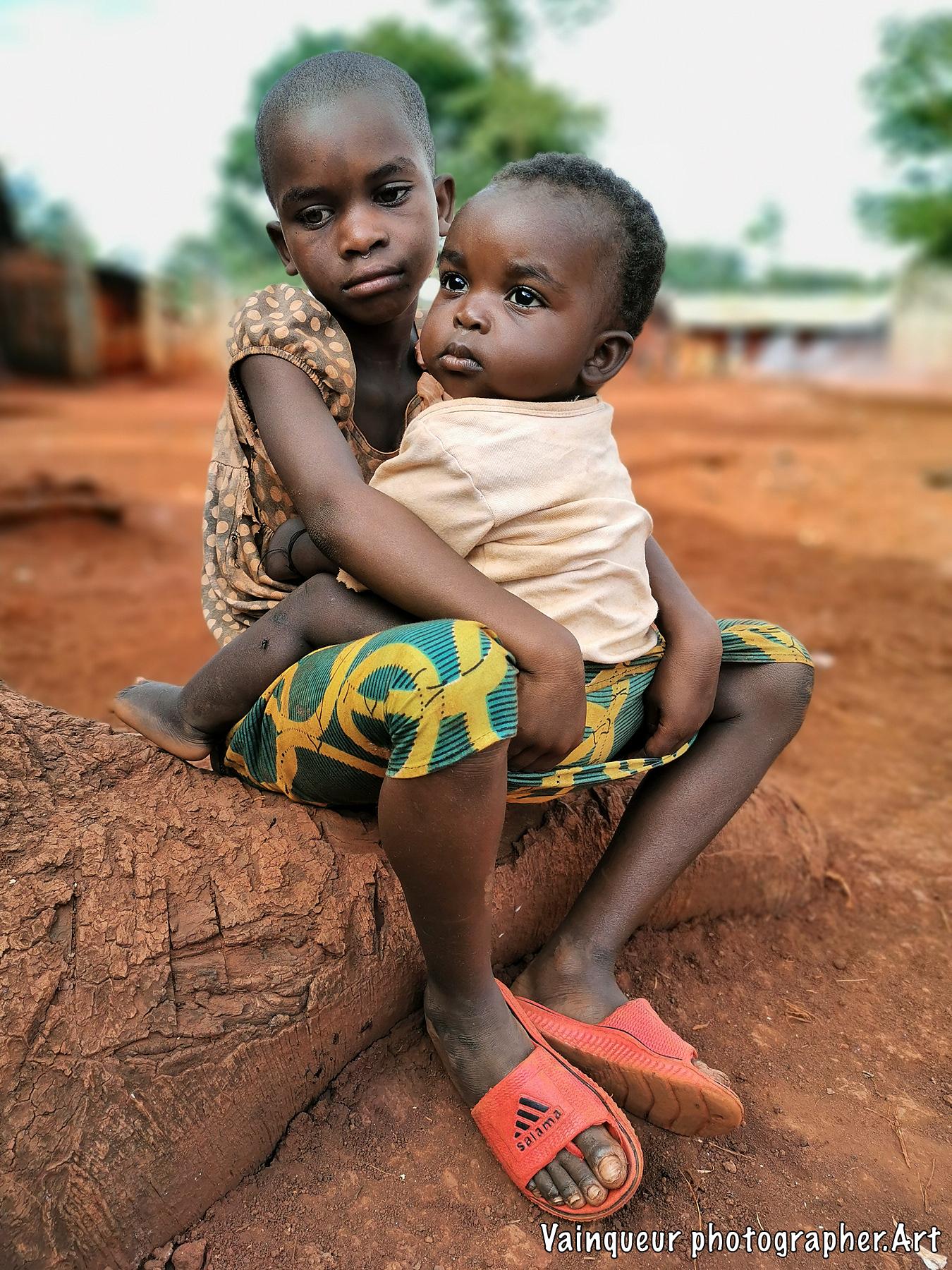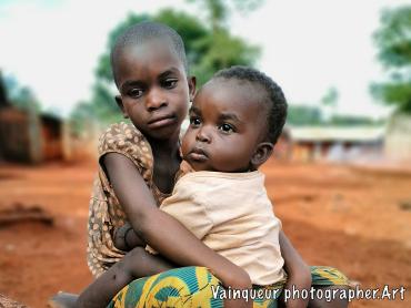 Two little girls sitting in front of their fence door are waiting for their mother. When I was in this village, I was surprised to see these children sitting in a state of emergency. My concern was to know why they were in this condition, the older daughter explained to me: "My little sister is very hungry and my mother is not here, she went to buy food at the market. She was already very hungry so I do not have enough patience because we are hungry. It's noon, the other brothers have already gone to their neighbor's house, and I'm left alone with her. ''
