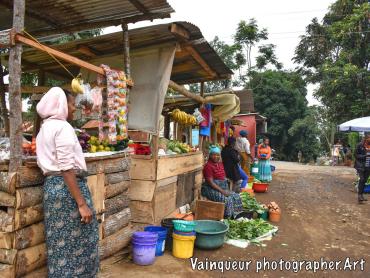 Next to a hospital in Kuaranga, there is a small market where women sell fruit and vegetables.