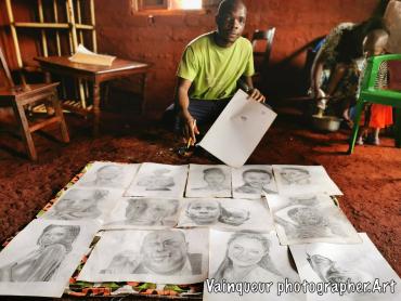 As you know, our aim is to show you the life of the refugees here in Nyarugusu, their daily way of life. We met a 19 year old Hassan Mayaka, he is a designer. He showed us these artistic works with an explanation. Hassan Mayaka said:
