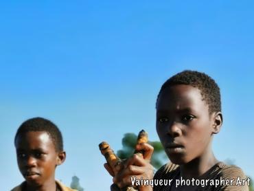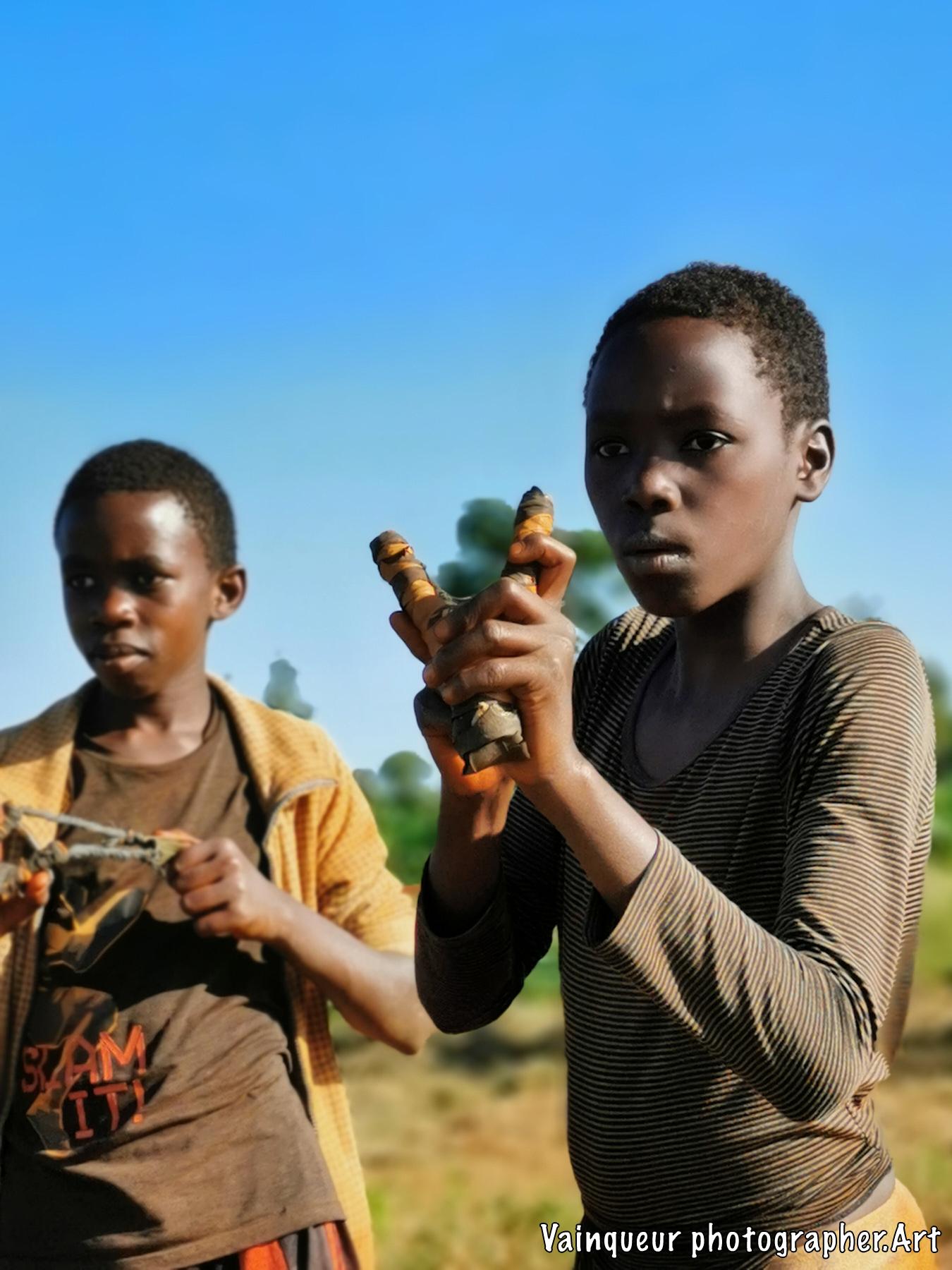 These small young hunters are from the bordering village of the Kichiba, their hunting is done on the birds which come to look for and eat the small fish in the stagnant water and those which make the nests in the in the Kichiba and around.