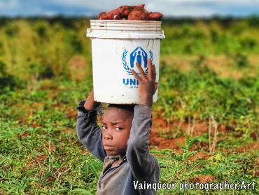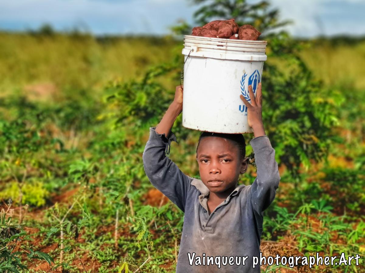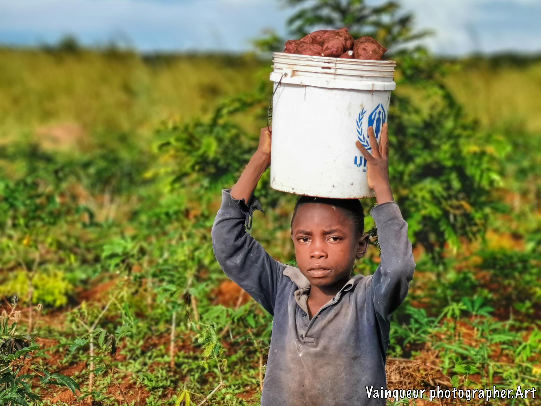 While I was in the Nyarugusu valley a few meters from the river I met this young boy who harvests sweet potatoes. I was surprised to see his commitment to his work to help end the famine in their family.