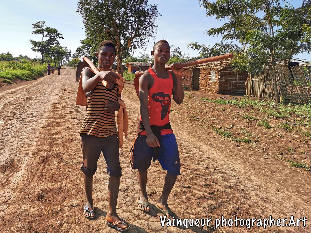 We met these two young farmers who are coming back to the camp, he told us: "Of course we come back from the field, since the morning we were on the ground and this field is outside the camps so very close to the Tanzanian village "Nyarugusu kijijini", it is not our own field, we are simple cultivators and the owner of the camp paid us in hectares."