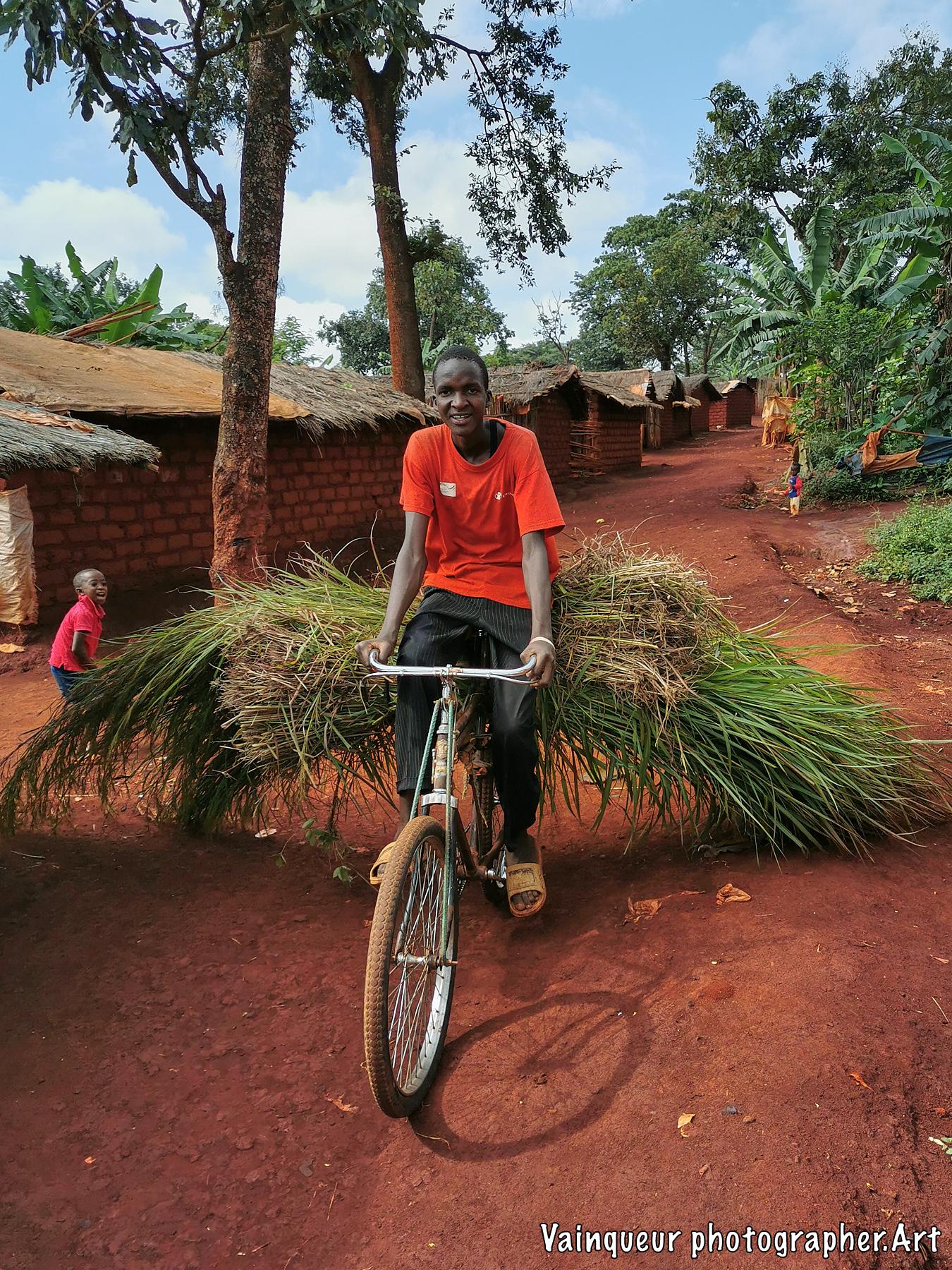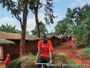 This photo was taken last month and the young boy in this photo comes from zone 2 of village B2. He rides out of the bushes on his bike to change the "nyasi" sails used on the roofs of houses in Nyarugusu. The villagers use these sails as waterproof.