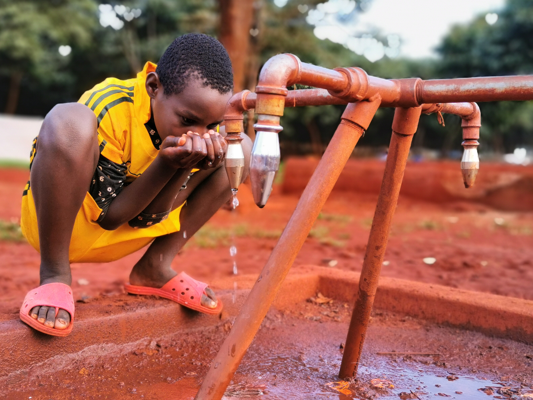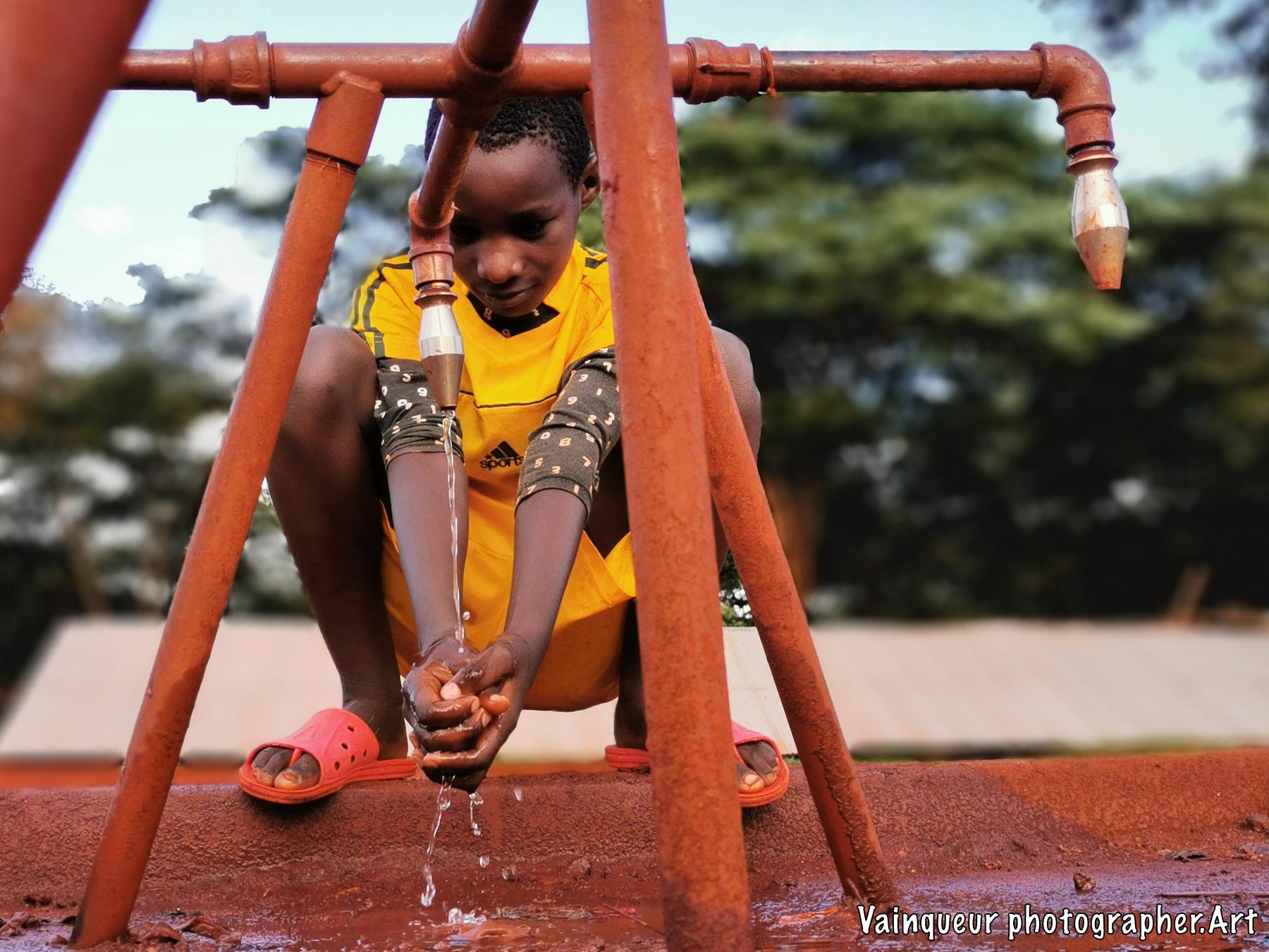 This young man is called Olivier, he is a passionate sportsman. He told us that after a training or a match, he headed to this pump to drink water. He added, that this pump always helps him to quench thirst.
